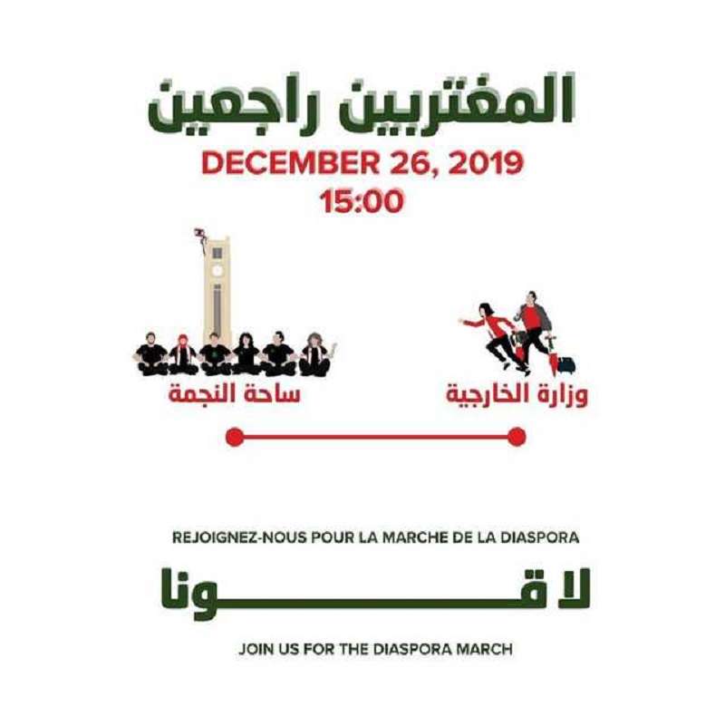 وتحت عنوان "المغتربون يعودون"، فإن رسالتهم التي تم تناقلها على وسائل التواصل الإجتماعي: "يا زنود اللبنانية جايين نشد معكن"، فهم يدعون الجاليات اللبنانية في العالم لمشاركتهم في مسيرة واعتصام من أمام وزارة الخارجية والمغتربين في بيروت وصولا إلى ميدان النجمة الساعة 3 بعد ظهر يوم الخميس 26 كانون الأول/ديسمبر، وهدفهم هو دعم الناس في ثورتهم، فضلا عن المستجدات الأخيرة بالاحتجاج ضد الرئيس الجديد المكلف للحكومة، الذي برأيهم لا يلبي أي من مطالب الشعب، ولرفع الصوت لأن الأشخاص الموجودين في السلطة لا يسمعون صوت الشعب، لا سيما أعضاء البرلمان الحاليين الذين تجاهلوهم تمامًا، وكالعادة، احتفظوا فقط بمصالحهم الشخصية في قرارهم الأخير.