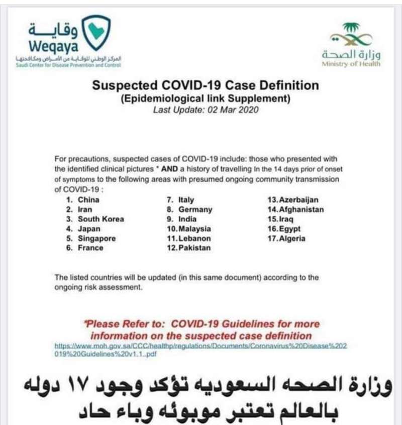 معالي الوزير... ما ينوف عن مئتي مقال من القطع الصغير والمتوسط والكبير، نشرها موقعنا "إليسار نيوز" عن فيروس "كورونا"، وقد شاركنا معاليكم، ومعالي رئيس الحكومة بما لا يزيد عن 10 بالمئة منها على موقع التواصل الإجتماعي "تويتر"، ومعظمها المقالات التي تخص لبنان، لا ندعي أننا الوحيدون، ولكن لو تابعت المقالات، لوجدت ما كنا نحذر منه ومنذ أواخر كانون الأول/ديسمبر 2019، عن هذه العدوى التي انتشرت حتى الآن لتصل إلى أكثر من 100 ألف إنسان تحديدا (100.330)، و3408 وفاة، والمعلومات التي تصلنا من مصادر عالمية وعلمية ورسمية موثوقة كما أن مصادر غير رسمية تؤكد أن الأعداد في الصين أكثر بكثير، وفي إيران أكثر بكثير لدرجة أنها لقبت بـ "ووهان الشرق الأوسط"، كما أن هناك نوعا شبه قناعة أن مصر، نعم مصر، هي بؤرة المرض الثانية بعد إيران، خصوصا وأن عددا من الحالات المكتشفة في بلاد أخرى مصدرها مصر، وكما وصل موقعنا "إليسار نيوز" أن وزارة الصحة السعودية قد قدمت لائحة بالدول التي من المتوقع أن تكون مصدرا لهذه العدوى واضعة اسم مصر في المرتبة 16 وسنرفق بهذا المقال صورة عن هذا التعميم، والوضع مخيف في لبنان خصوصا، كون حدودنا البرية والبحرية والجوية القانونية وغير القانونية مفتوحة ولا مجال لضبطها ومنذ عقود.