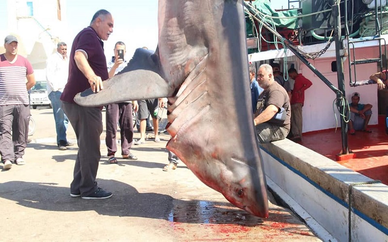 صيد سمكة قرش ضخمة في جرجيس – تونس