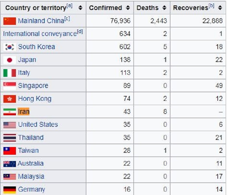 عاجل... ارتفع عدد الإصابات بفيروس "كورونا" ,COVID_19 وفقا لوزارة الصحة الإيرانية: إلى 8 وفيات وارتفع عدد الحالات إلى 43.