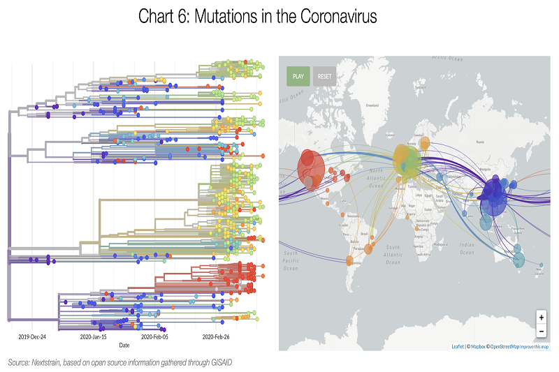 هناك فرضية أخرى تم ذكرها في مقالة في موقع Medium، وهي منصة على الإنترنت لمناقشة الأفكار والمعرفة والمنظورات الملحة، تحت عنوان "فيروس كورونا: المطرقة والرقص"، للكاتب توماس بوييو Tomas Pueyo ، ووفقا لـ بويو فإن "الفيروسات ذات الحمض النووي الريبي RNA مثل فيروس كورونا، أو الإنفلونزا تميل إلى التطور حوالي 100 مرة أسرع من تلك التي تعتمد على الحمض النووي DNA - على الرغم من أن الفيروس التاجي يتحور ببطء بالمقارنة مع فيروسات الإنفلونزا "، لذلك ربما يكون قد تطور إلى شكل أكثر انتشارا" ما قد يفسر انتشاره الكبير في إيطاليا وأوروبا، وكذلك في إيران والولايات المتحدة بهذا الشكل الكبير والسريع.