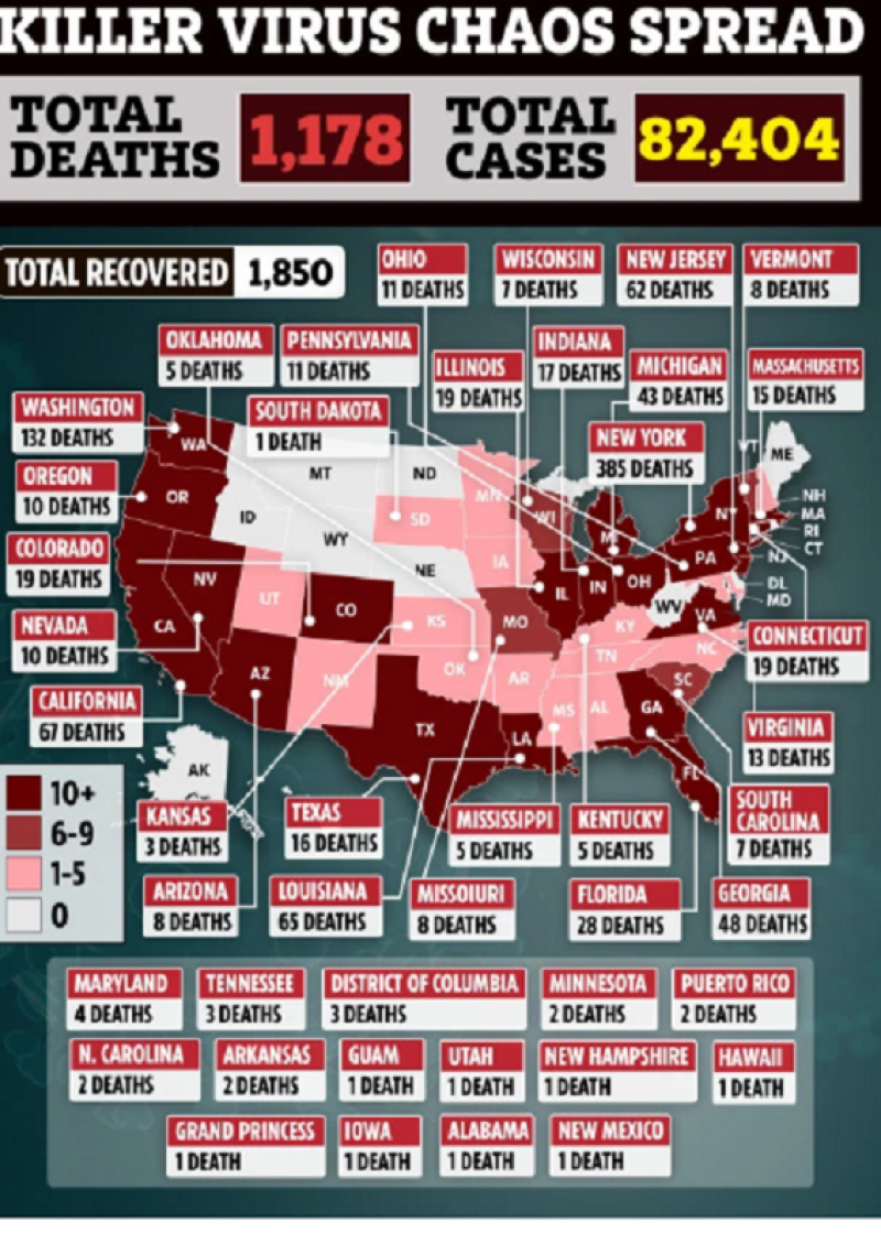 وجاء إعلان بنس بعد أن تم تأكيد أكثر من 82000 حالة إصابة بالفيروس التاجي في الولايات المتحدة ، مع ما لا يقل عن 1178 حالة وفاة (وقد وصل عدد الحالات في الولايات المتحدة الأميركية حتى وقت كتابة هذا المقال إلى 85,612 حالة مثبتة مخبريا،