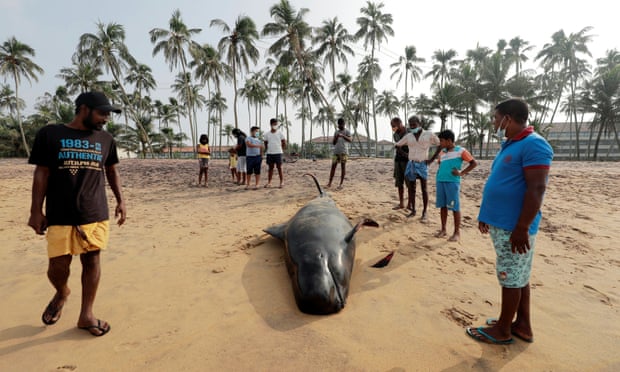 جنح حوالي 120 حوت طيار Pilot Whale على الشاطئ بالقرب من العاصمة السريلانكية كولومبو، وهرع أفراد البحرية والمتطوعون المحليون لإنقاذها، لكن دفع الحيوانات مرة أخرى إلى المحيط كان صعبًا حيث عاد وجنح عدد كبير منها مرة أخرى.